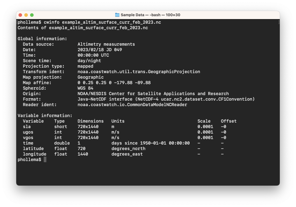 - Some of the useful metadata for these data files is not printed by the cwinfo tool. Try loading the data in CDAT and looking at the file information. If you want to see file information in the terminal, try running