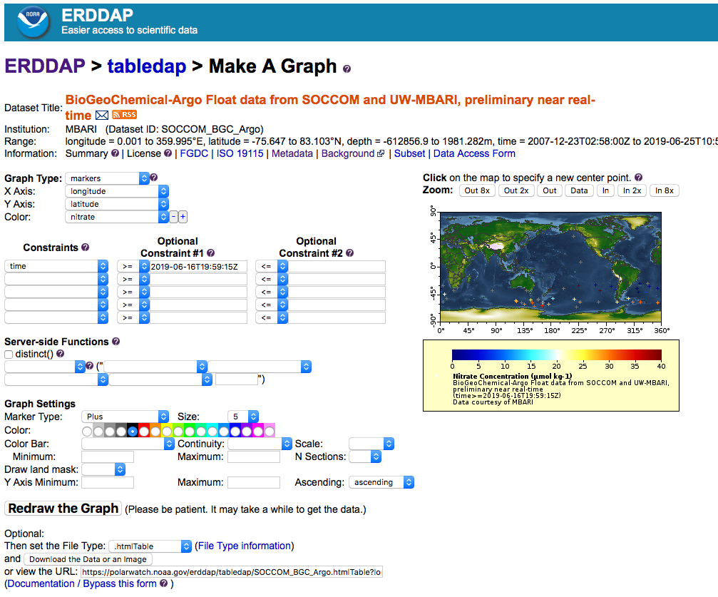 The “Make A Graph” page works slightly differently for the tabular datasets than it does for gridded datasets. For tabular datasets, the subsetting is done by the widgets listed under “Constraints” (for gridded datasets they are classified under “Dimensions”).