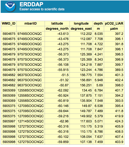 There are two types of data in ERDDAP, gridded data and tabular data. So far all of our examples have been with gridded data. Working with tabular data is a little different. Here we will explore the Biogeochemical-Argo (BGC-Argo) dataset, which is hosted on the PolarWatch ERDDAP.