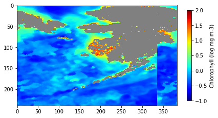ds_subset<xarray.DataArray 'chlor_a' (altitude: 1, latitude: 240, longitude: 384)>